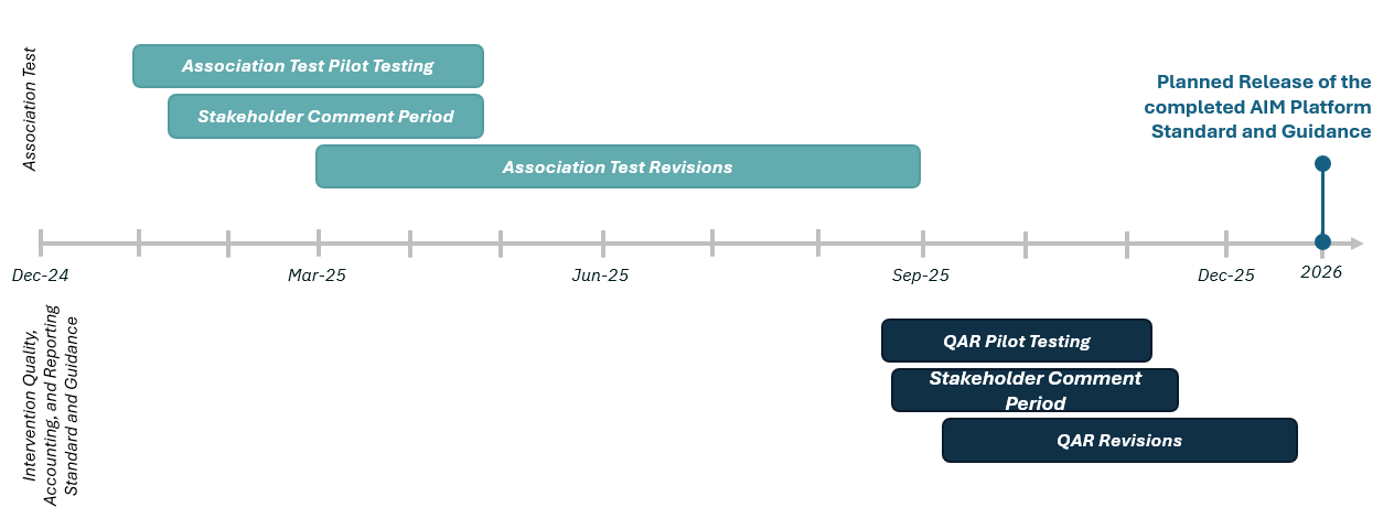 The AIM Platform, launched in 2023, aims to release the completed Standard and Guidance by early 2026.